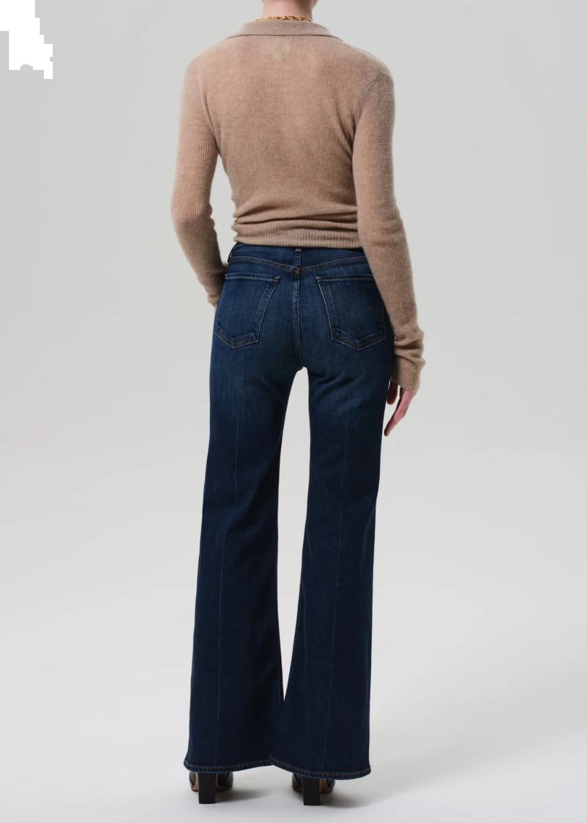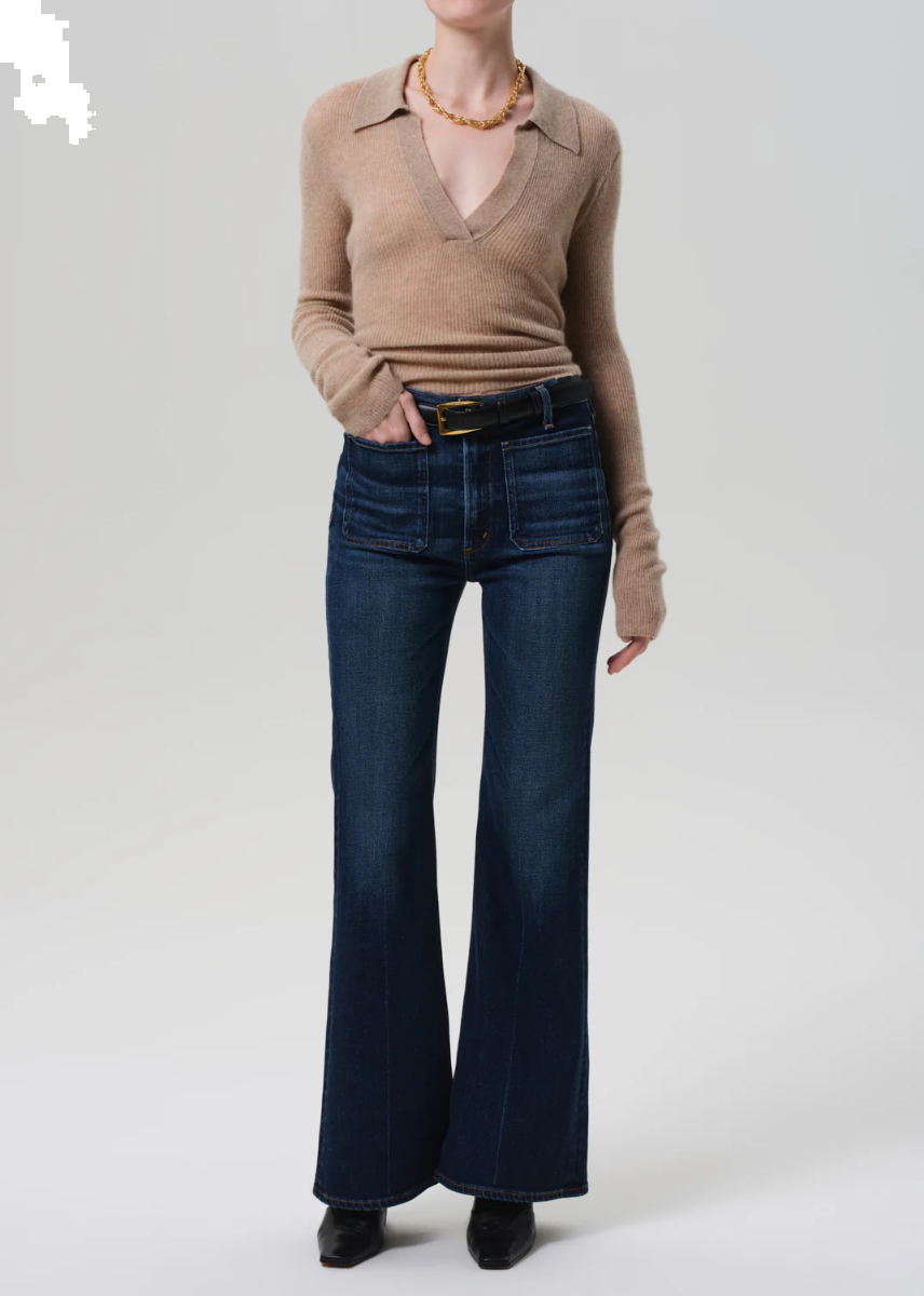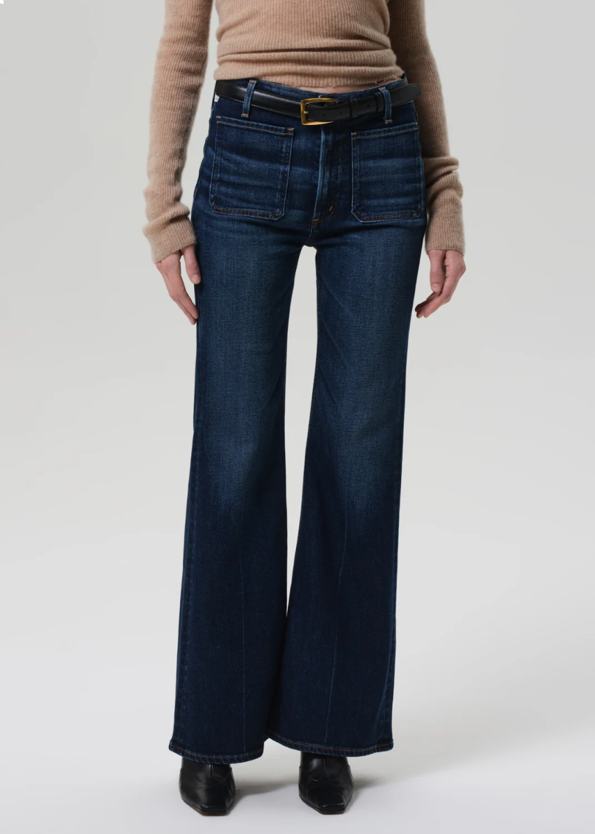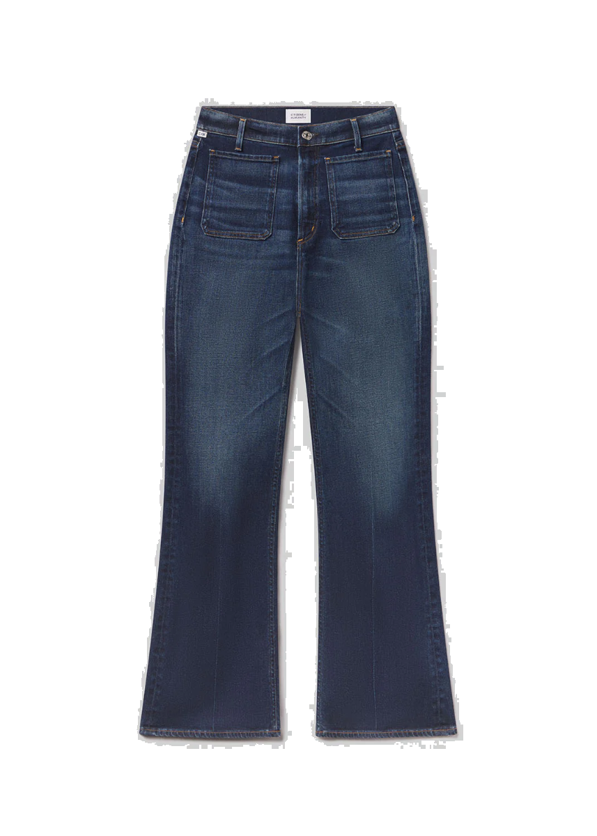 Die Kimberly ist eine hoch geschnittene Hose von CITIZENS of HUMANITY mit Schlag, die das Bein verlängert und die Taille konturiert.