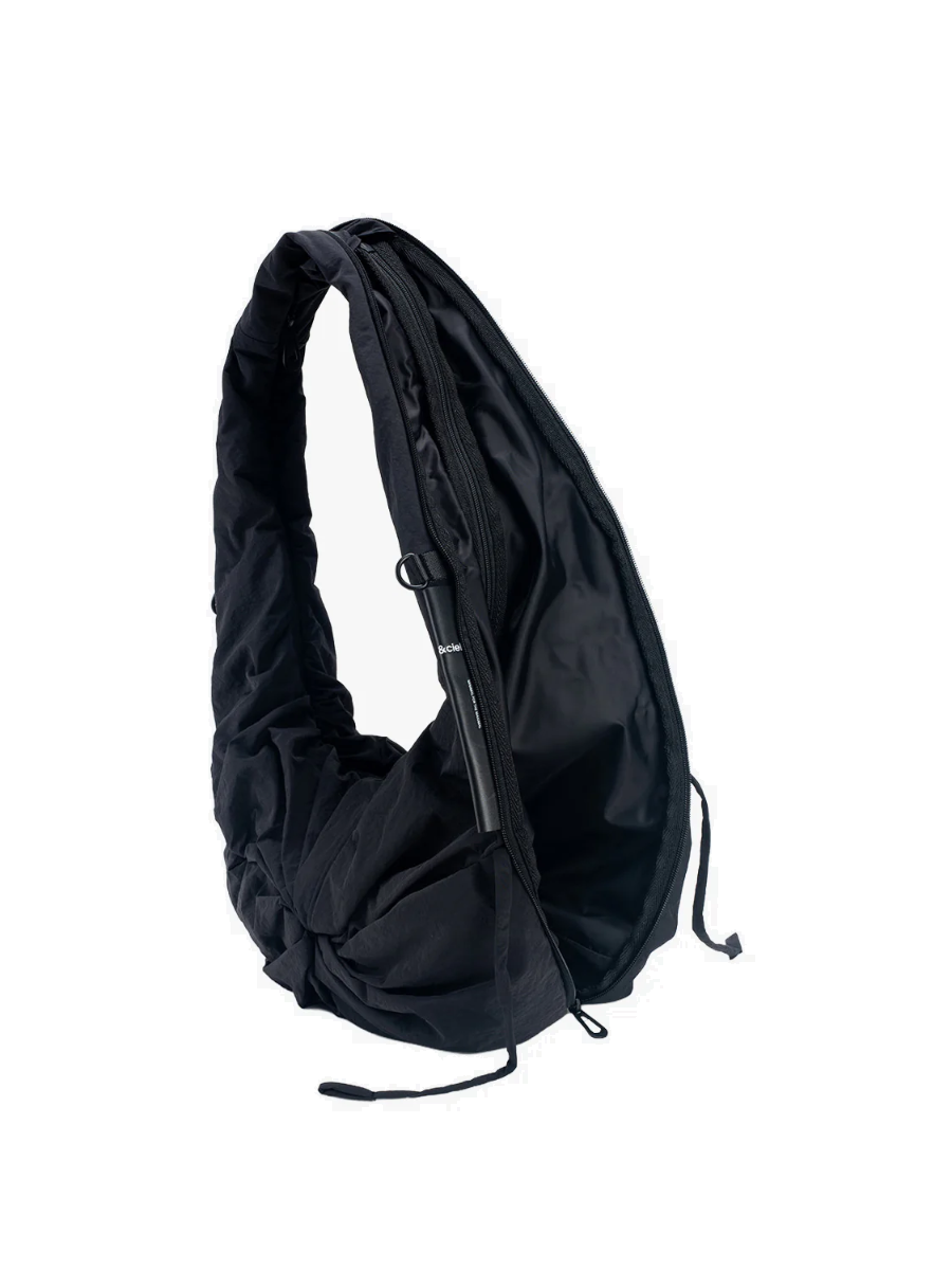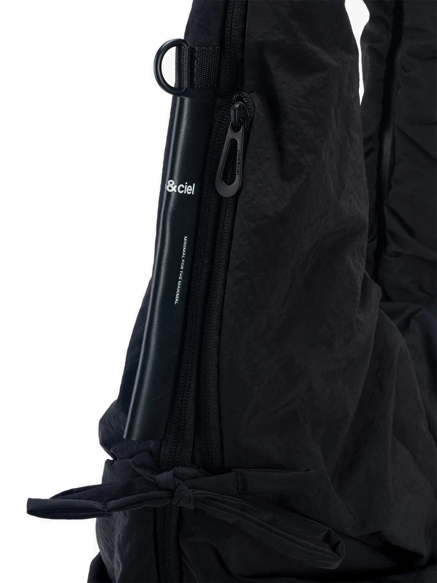 Hergestellt aus ‚Smooth Black‘ Nylon, ist die PO Tasche eine Hybrid-Tasche, die sich im Handumdrehen in eine tragbare Weste verwandeln lässt und das Mantra von CÔTE&CIEL ‚Taschen zum Tragen, nicht zum Mitnehmen‘ verkörpert. Ein zentraler Reißverschluss kann verwendet werden, um die zweite Form der PO zu enthüllen.