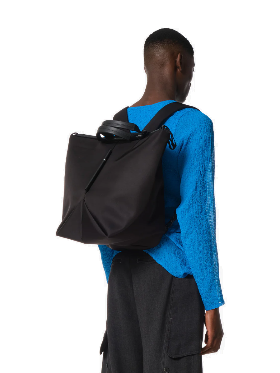 Der TAMU-Rucksack ist ein eleganter schwarzer Rucksack von CÔTE&CIEL mit einer architektonischen, origami-ähnlichen Basis, inspiriert vom AMU. Für Vielseitigkeit entworfen, können die Rucksackriemen eingezippt werden, sodass er als edle Tasche mit Ledergriff getragen werden kann. Mit zusätzlichen D-Ringen zum Befestigen eines ADDA (separat erhältlich) für die Tragung als Umhängetasche passt sich der Tamu mühelos an Ihre Bewegungen an.
