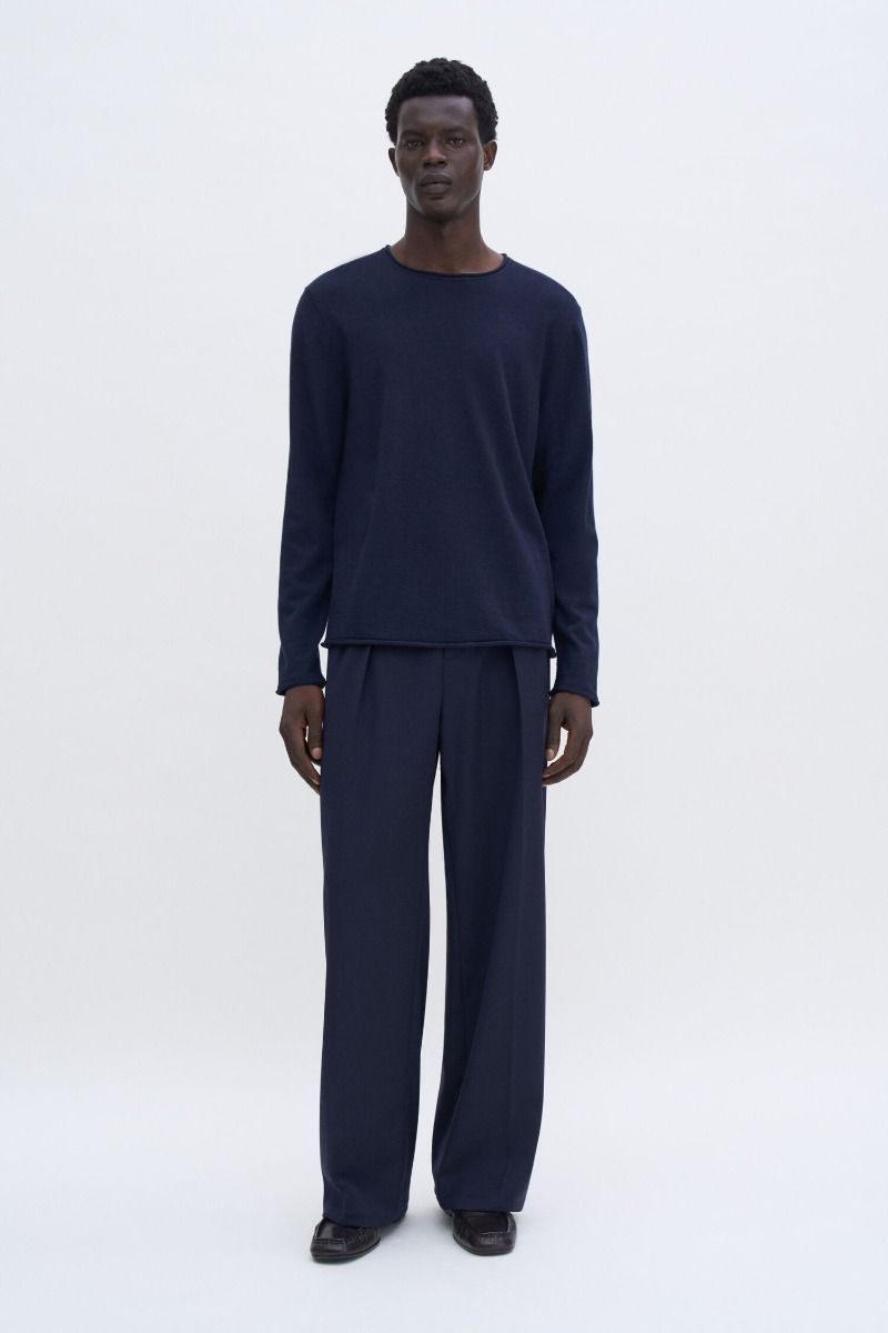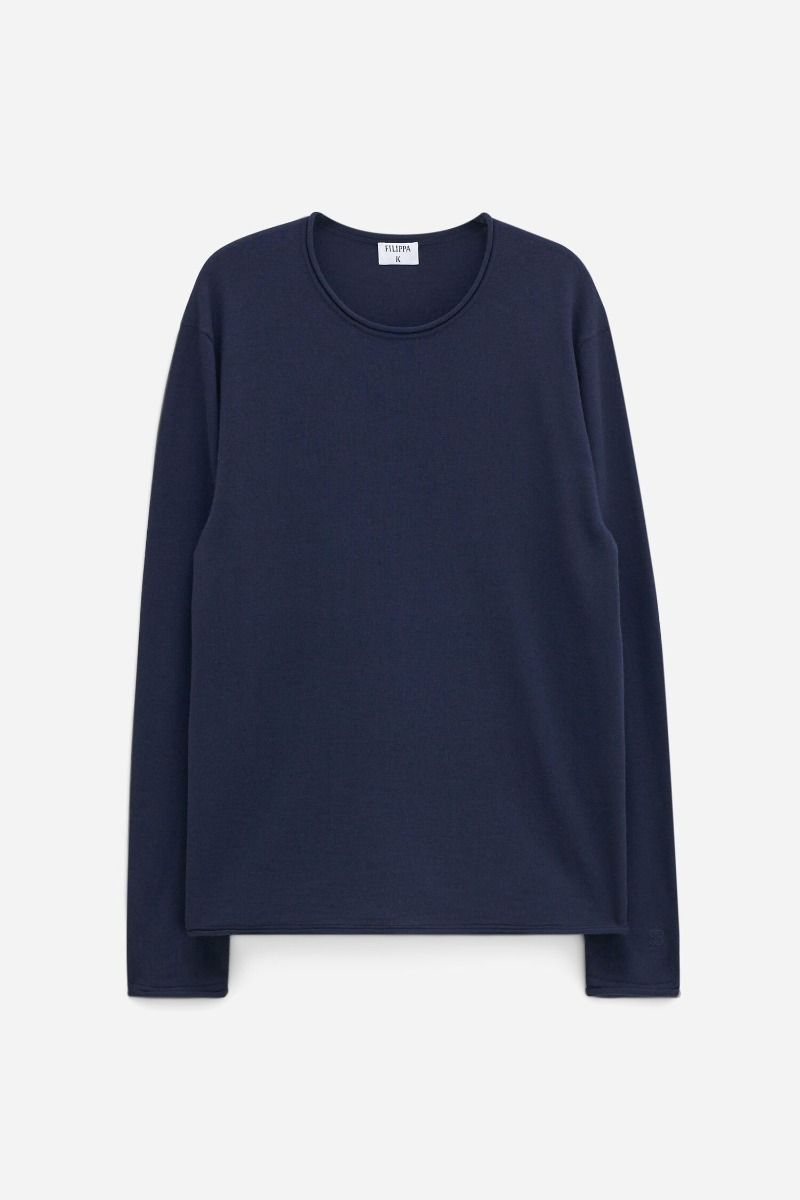 Leichter Merinowollpullover in normaler Passform und aufgerollten Kanten von FILIPPA K, mit dem Filippa K 93 Monogramm am Ärmel bestickt.