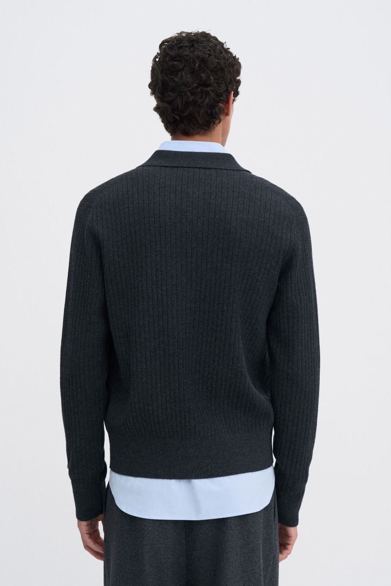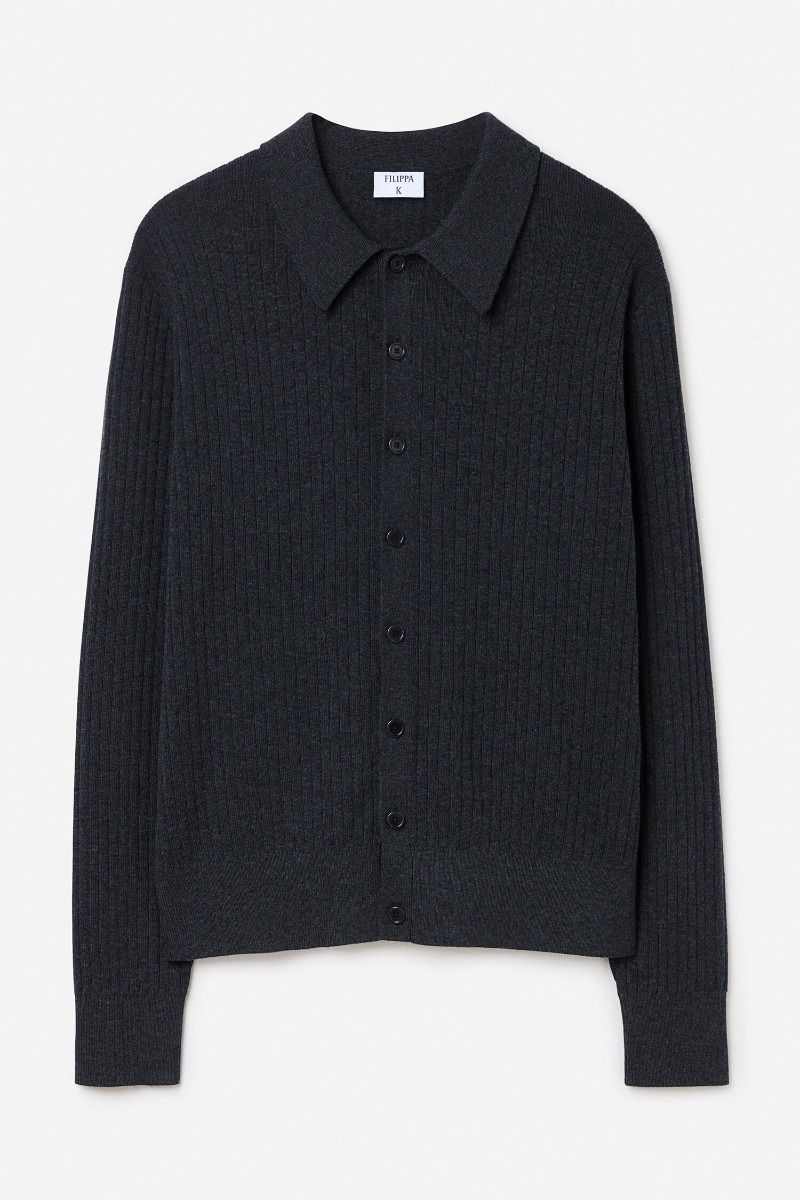 Eine gestrickte Hemdweste von FILIPPA K aus einer leichten Mischung aus Bio-Baumwolle und Merinowolle mit einer gerippten Textur.