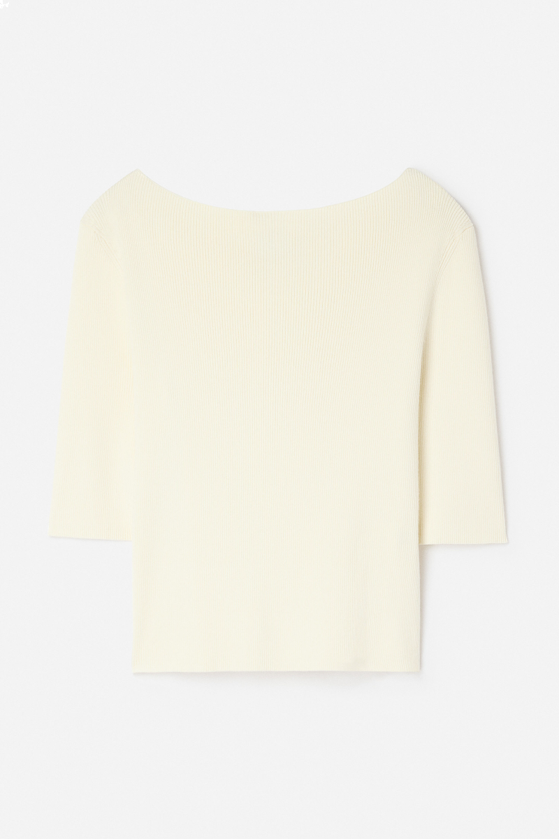 Das Boatneck Rib Top von FILIPPA K besteht aus einer leichten Viskosemischung und hat einen Slim-Fit. Mit ellbogenlangen Ärmeln.