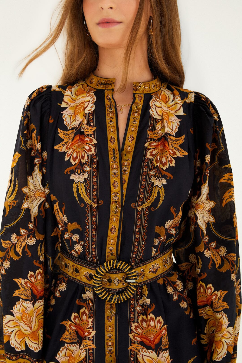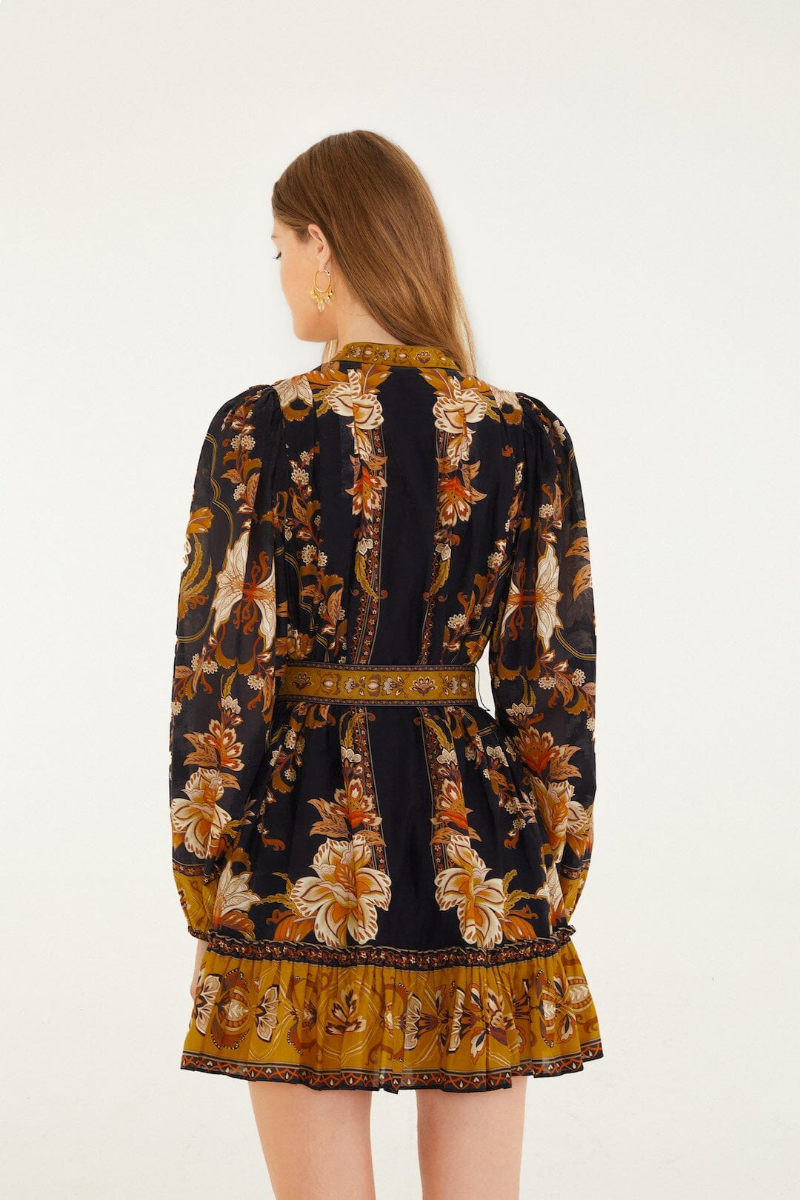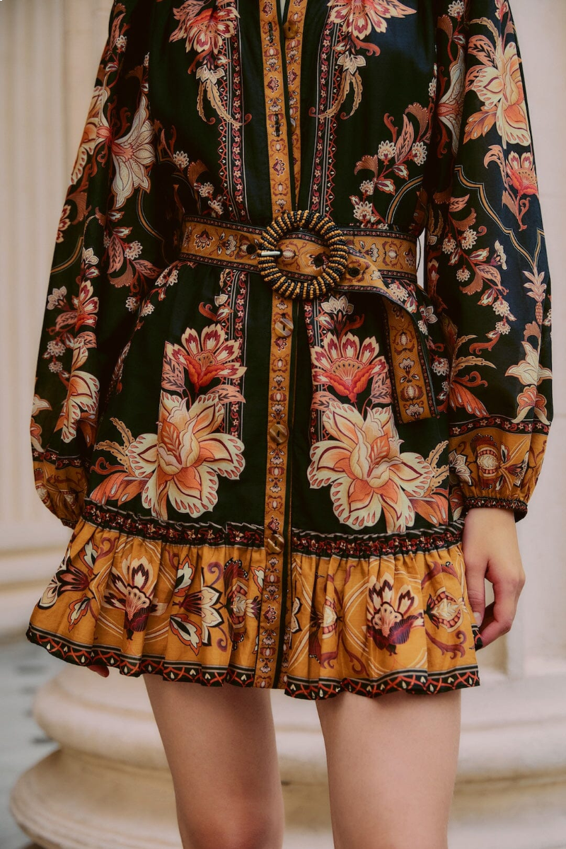 Kleid FARM RIO Majestic Garden Beaded Buckle Long Sleeve Mini