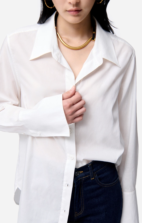 Dieses Hemd von VANESSA BRUNO mit seinem weichen Volumen erfindet das klassische männlich-feminine Stil mit einem Hauch von raffiniertem Kontrast: den extra langen Manschetten. Perfekt, um eine fließende Silhouette auszubalancieren oder rohen Denim zu heben.