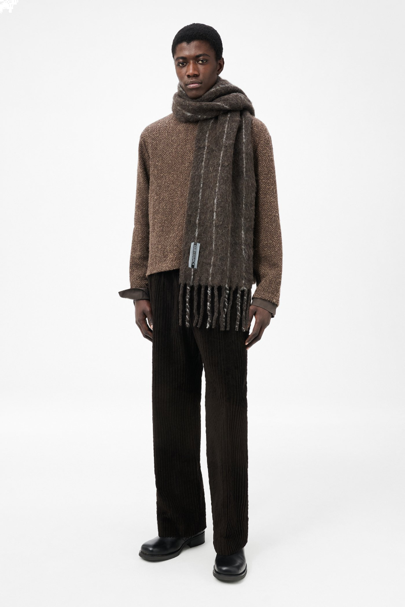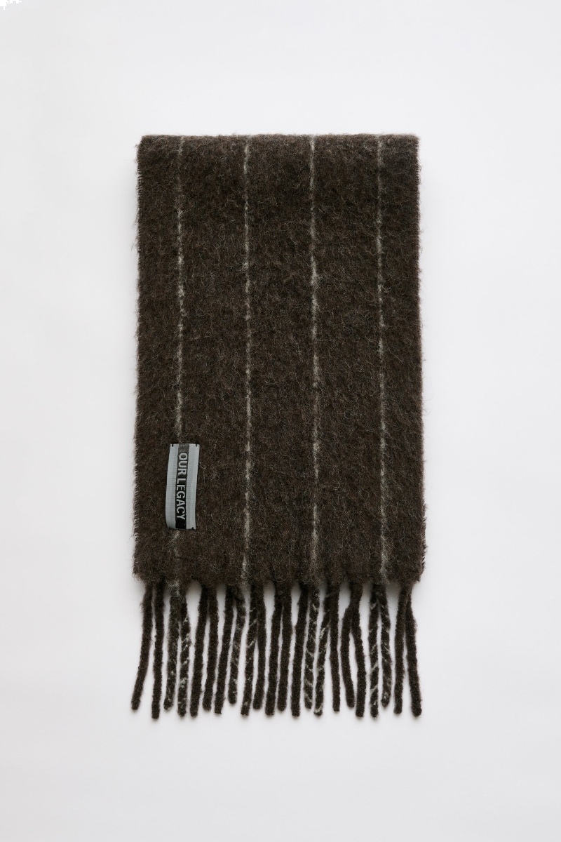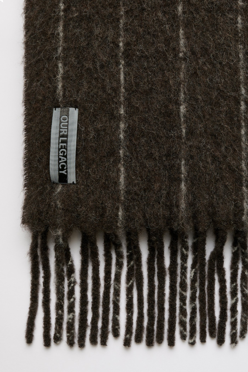 Der Estate-Schal in Braun von OUR LEGACY mit Nadelstreifen aus flauschigem Alpaka.