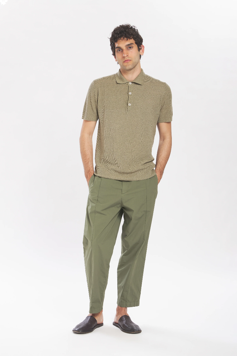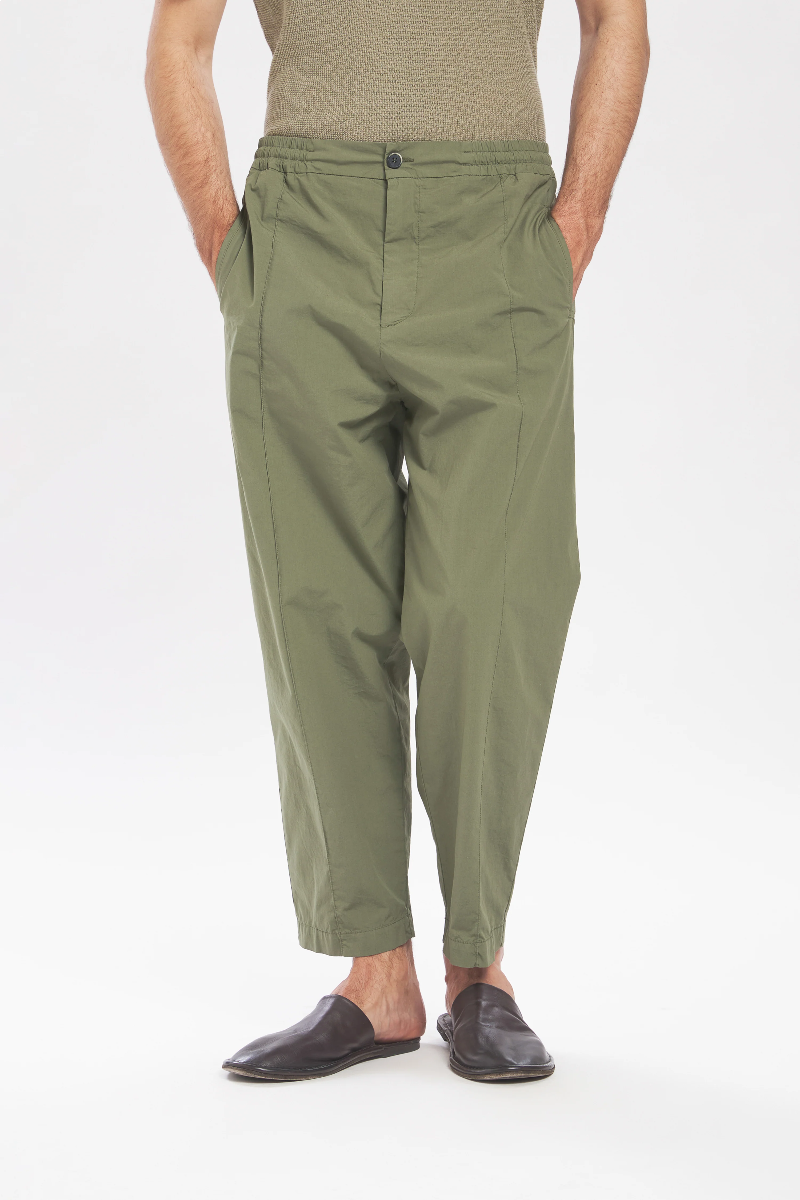 Die Ameo Pavion Hose von BARENA ist aus Fallschirm-Stretch-Baumwolle gefertigt, verfügt über eine bequem sitzende Silhouette, einen elastischen Bund und eine zentrale vordere Falte für lässige Raffinesse mit zeitgemäßem Flair.