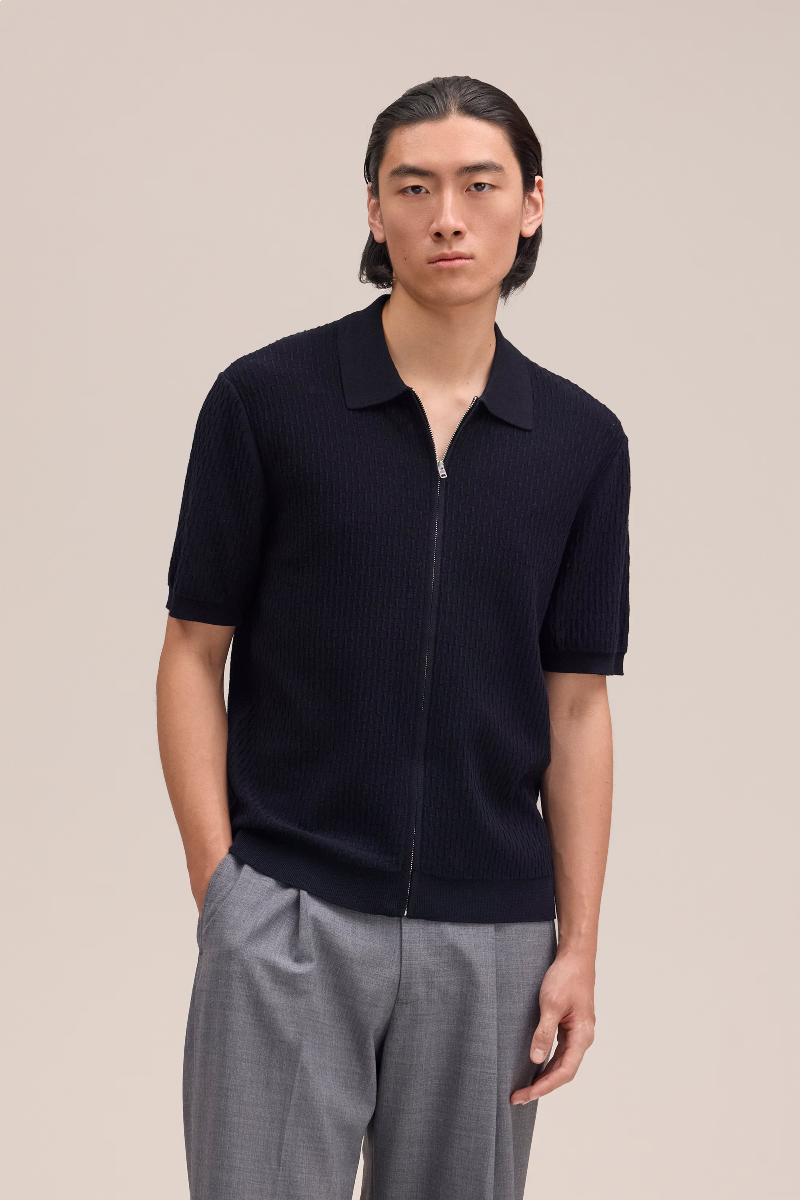 Full‑Zip‑Polo von NN.07 im regular Fit aus hochverzwirnter Bio‑Baumwolle mit sauberem Strukturstrick. Leichte Qualität mit feinem Griff, abgerundet durch den charakteristischen NN.07‑Reißverschluss.