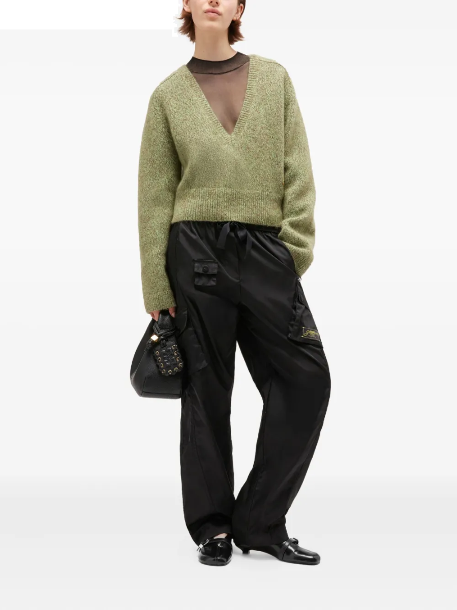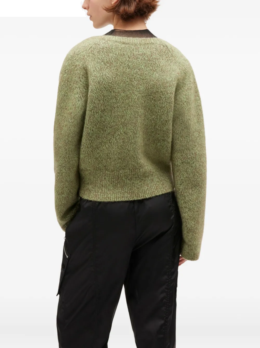 Grüner Pullover von GANNI aus Mohair mit einem V-Ausschnitt.