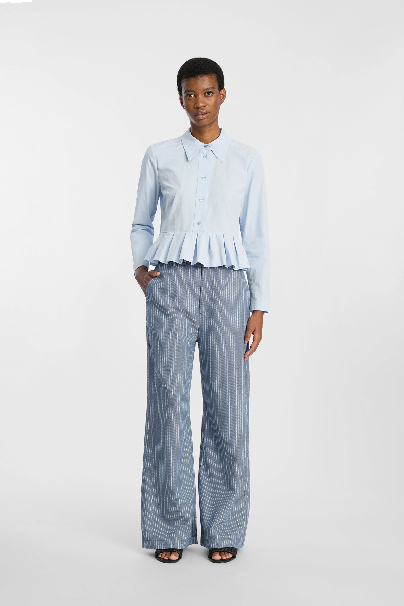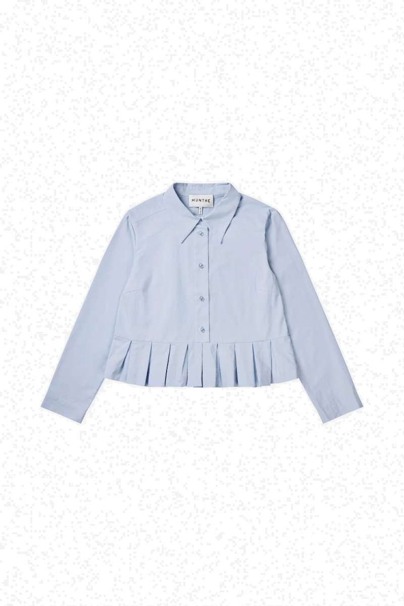 Hemdbluse von MUNTHE mit Knöpfen und elegantem Peplum-Detail am Saum. Die Bluse ist mit langen Ärmeln gestaltet.