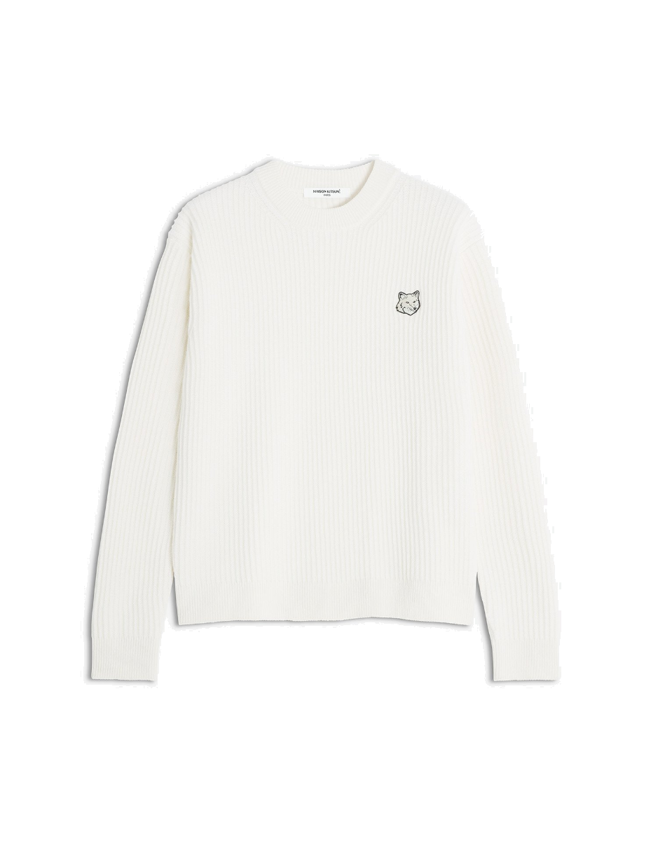 Langärmliger, gerippter Wollpullover von MAISON KITSUNÈ in Normaler Passform mit gesticktem Fuchs-Logo.
