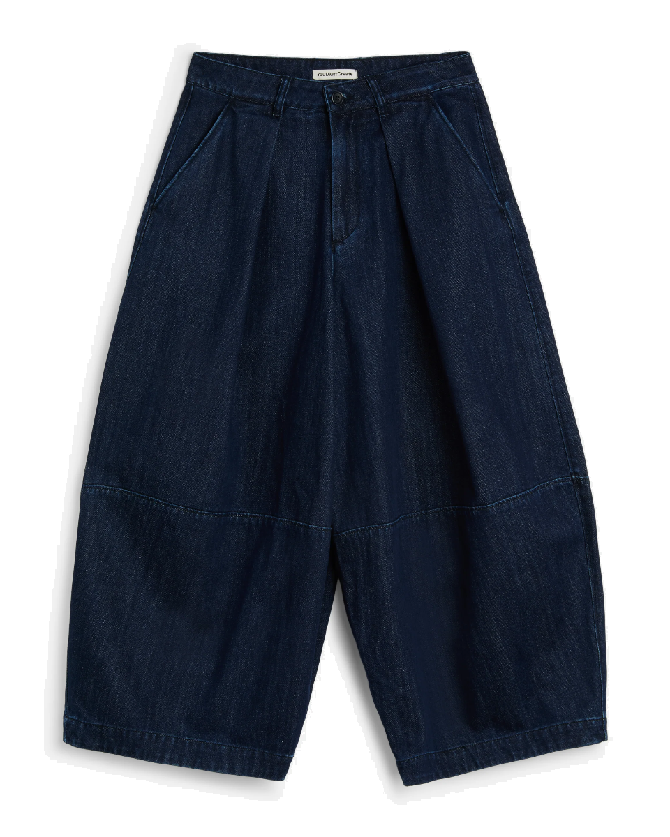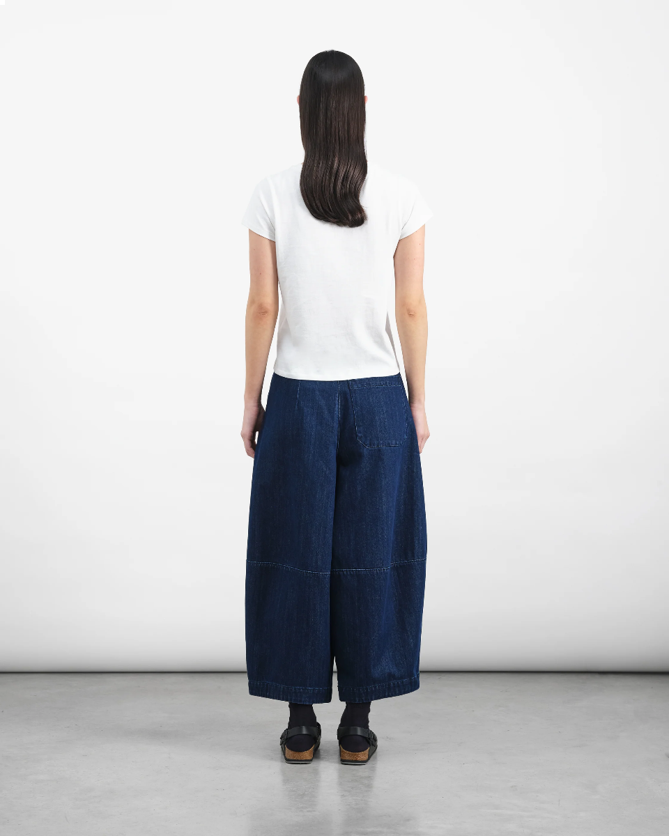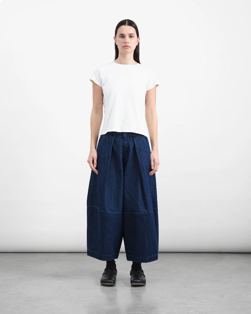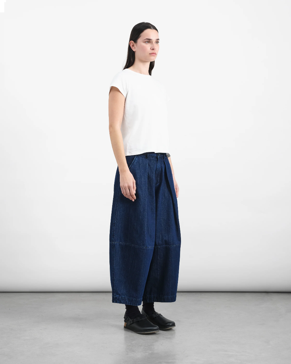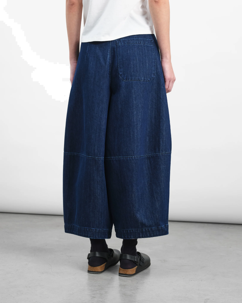 Hose mit weitem Bein und hoher Taille von YMC in Indigoblauer Bio-Baumwolle.