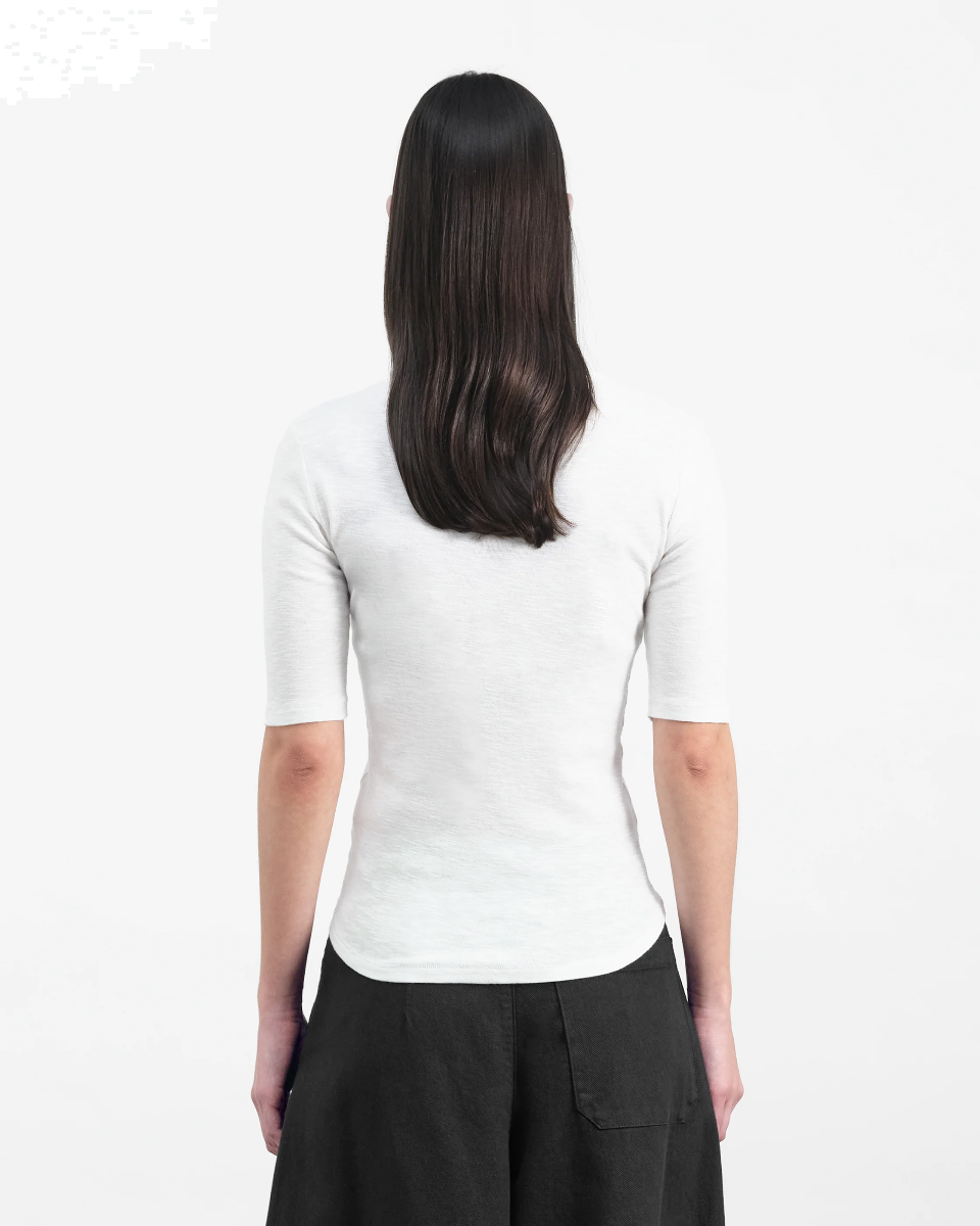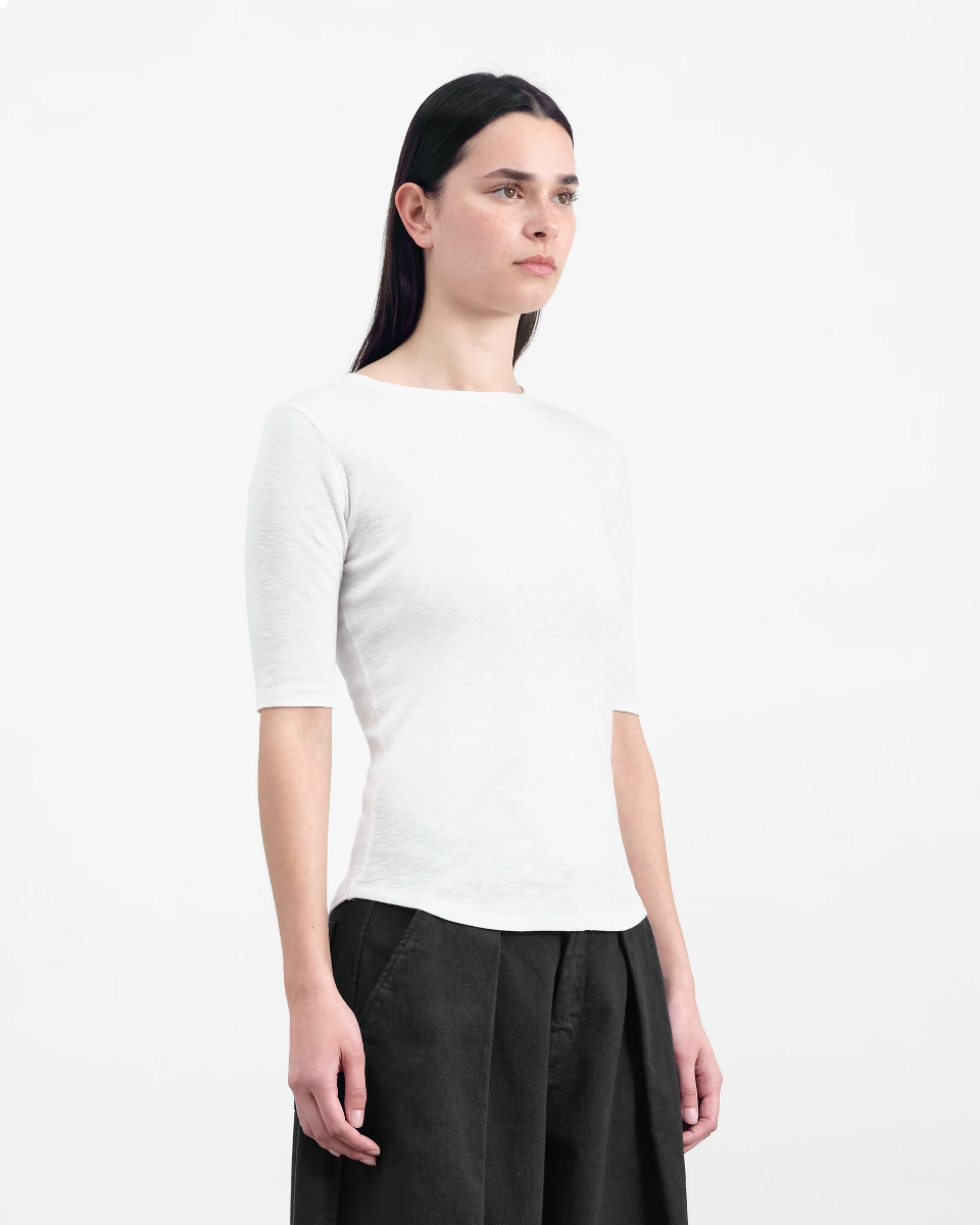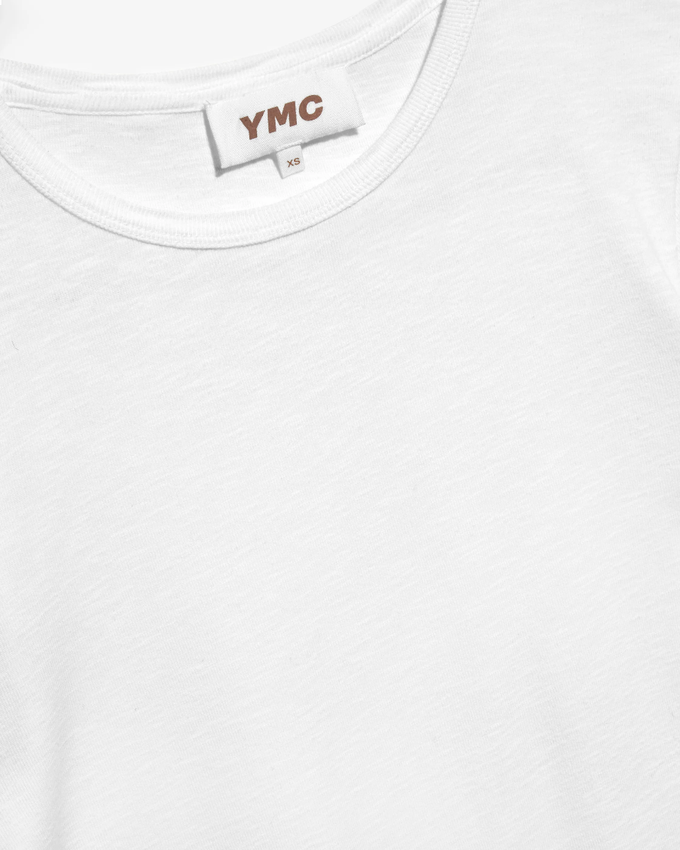 Schmal geschnittenes T-Shirt mit kurzen Ärme von YMC in Bio-Ripp-Slub-Baumwolle.