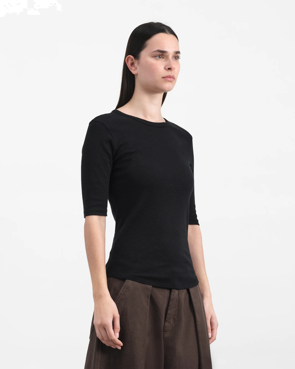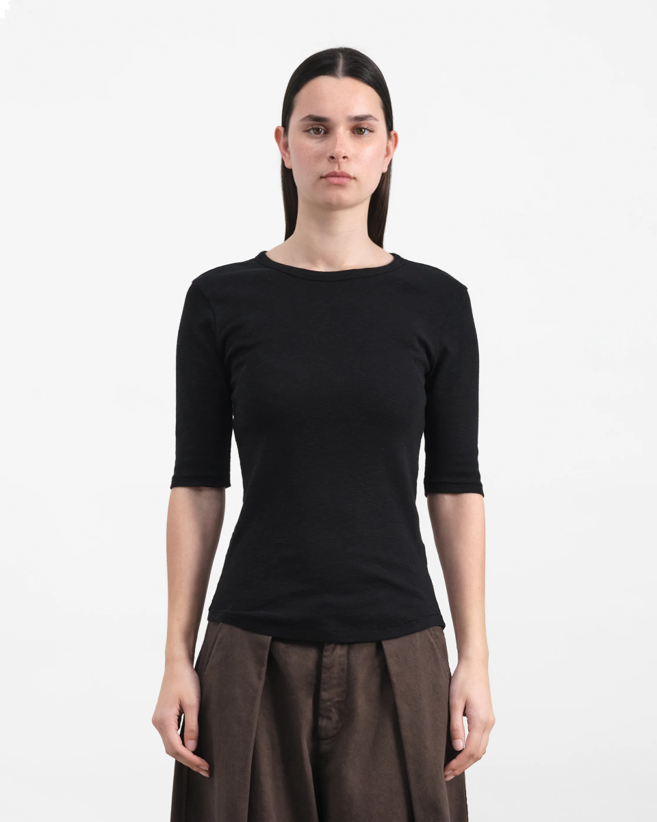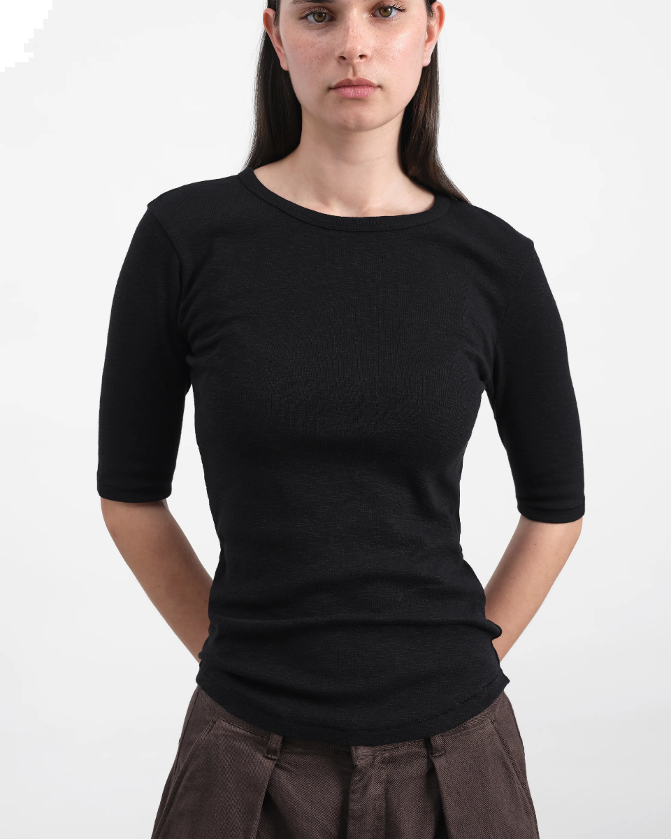 Schmal geschnittenes T-Shirt mit kurzen Ärme von YMC in Bio-Ripp-Slub-Baumwolle.