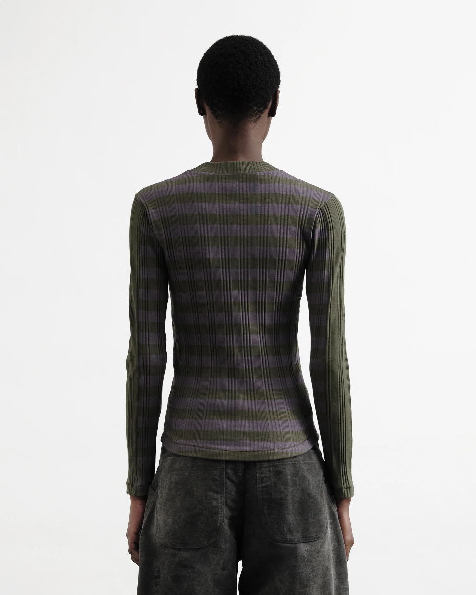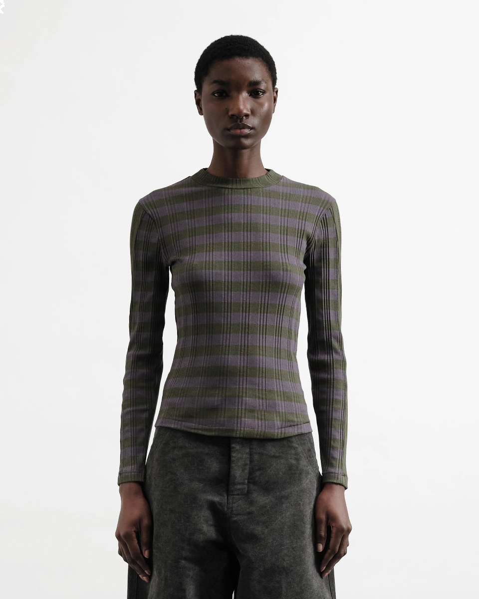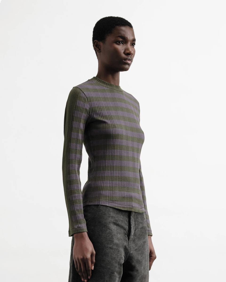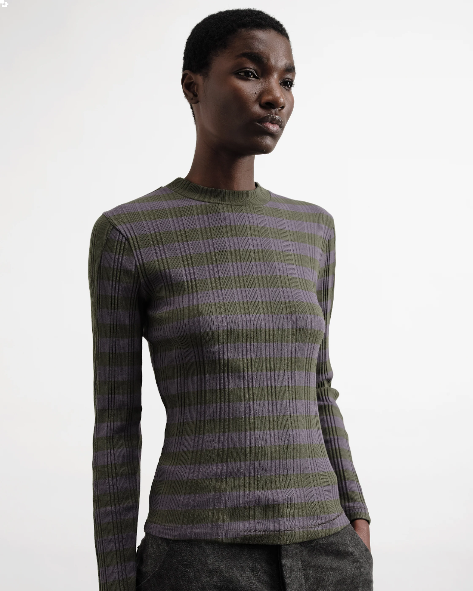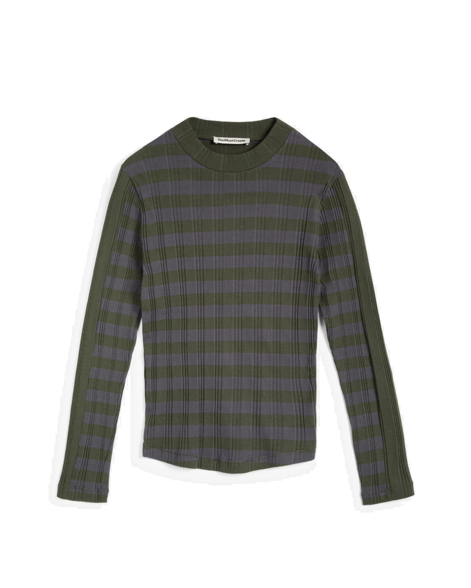 Oberteil mit Stehkragen und langen Ärmeln von YMC aus Portugiesischem Rippbaumwoll-Jersey.