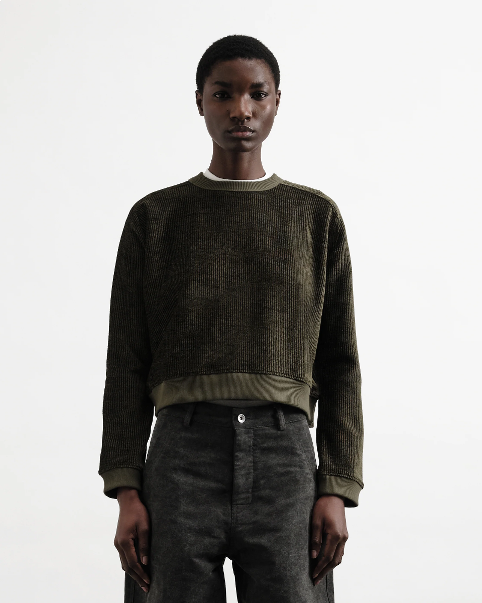 Rundhalsausschnitt Velours-Sweatshirt von YMC aus Baumwollmisch-Velours.