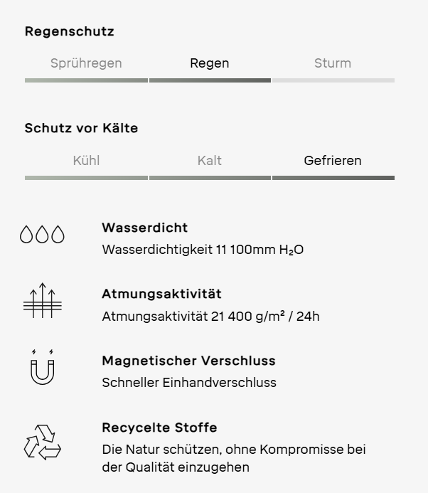- Zwei-Wege-Reißverschluss vorne mit winddichter Knopfleiste an Magneten