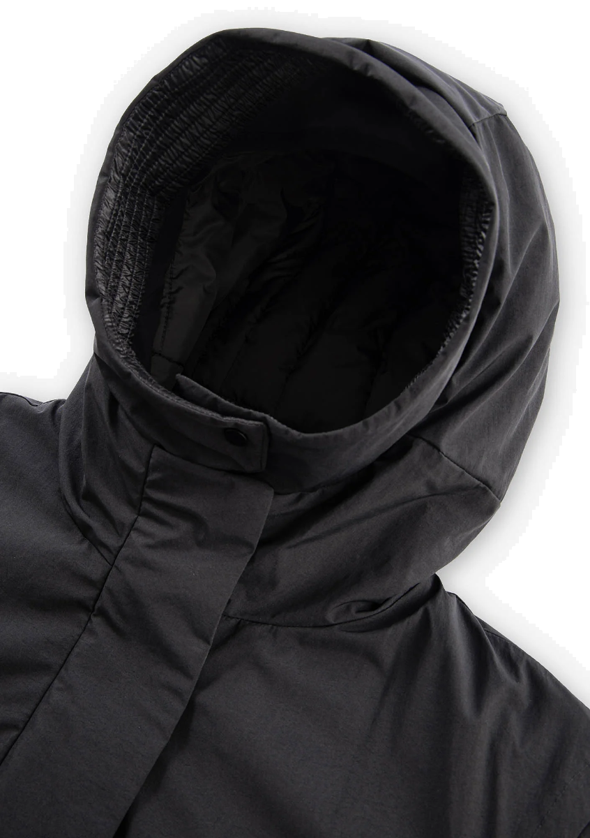 Der lange Parka SCHORL von KRAKATAU wurde mit Blick auf die Lastverteilung entwickelt: ein warmes Obermaterial, ein leichterer unterer Teil und eine atmungsaktive Membran. Die zonierte Isolierung sorgt für ein ausgewogenes Verhältnis von Wärme und Bewegungsfreiheit – der obere Teil verstärkt den Schutz in wichtigen Bereichen, während der untere Teil leicht bleibt. Die Kapuze, der Kordelzug und die Bündchen sind verstellbar, so dass sich die Passform sowohl an den Körper als auch an das Wetter anpassen kann.