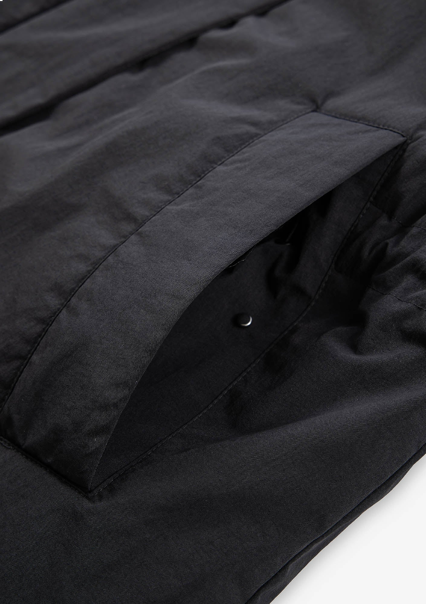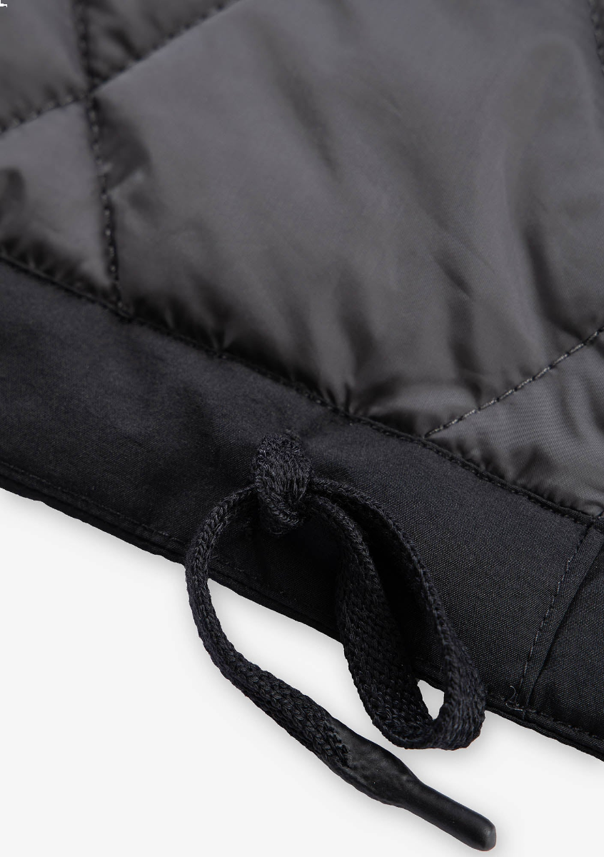 Zwei-Zonen-Isolierung aus recyceltem Polyester. Eine Dichte von 160 g/m² im oberen Bereich sorgt für zusätzliche Wärme an Brust und Rücken, während 100 g/m² im unteren Bereich für Leichtigkeit und Bewegungsfreiheit sorgen. Beide Schichten sind feuchtigkeitsbeständig, formstabil und benötigen nur minimale Pflege.