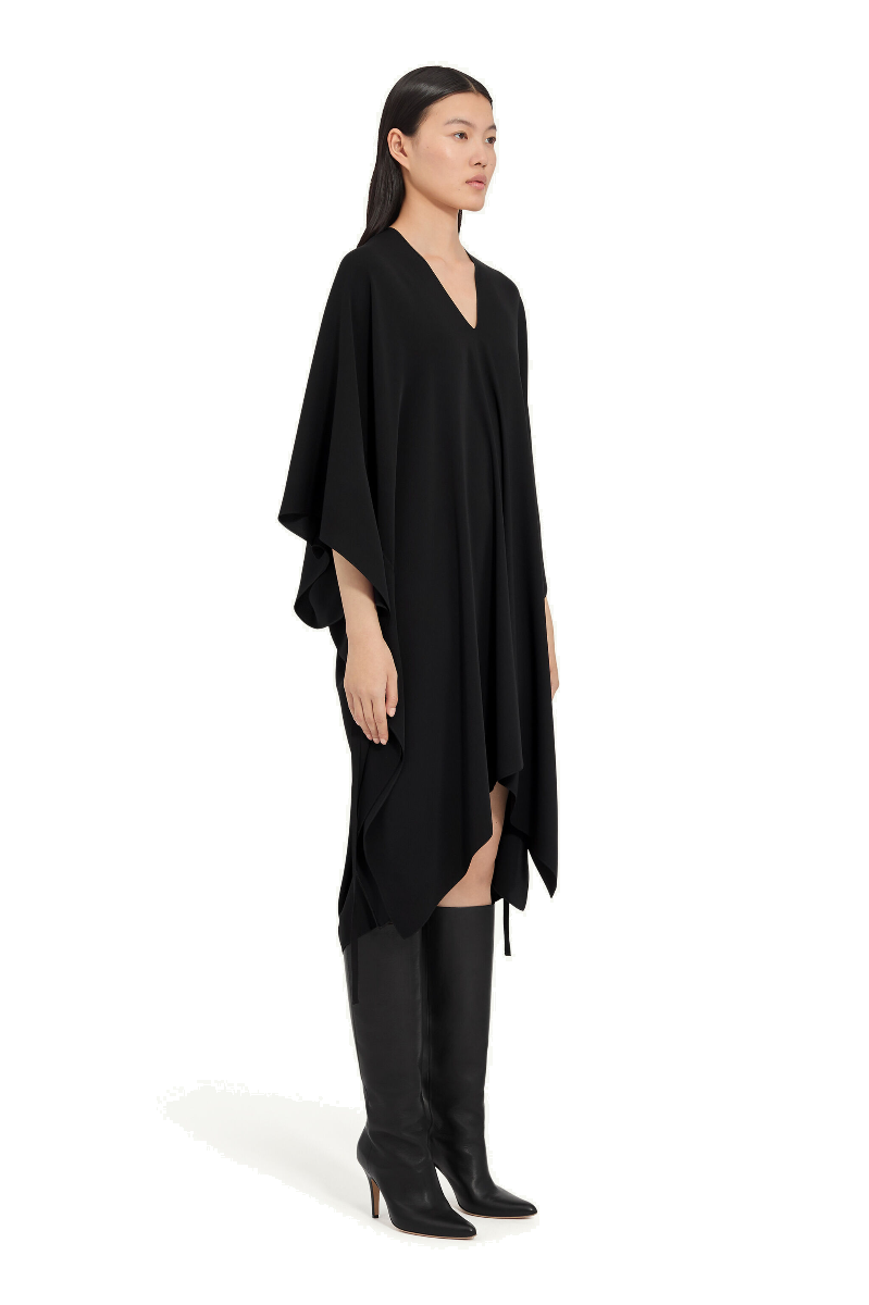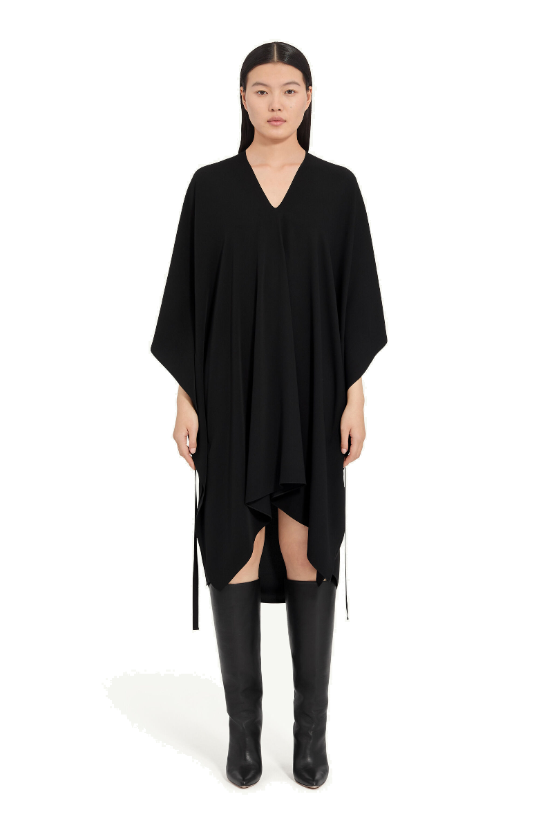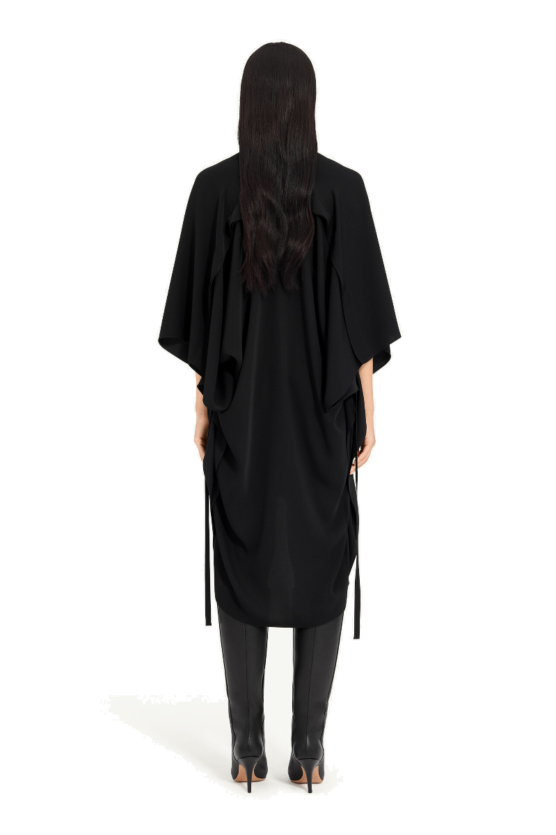 Kleid mit weiten Kimono-Ärmeln voin MM6. Das anpassungsfähige Design bietet vielfältige Stylingmöglichkeiten und kann für eine plastische Raffung vorne oder für luftige, unordentliche Eleganz hinten gebunden werden. Auf der Rückseite zeugt eine weiße Naht von den minimalistischen Codes der MM6-Reihe und verstärkt die elegante und doch dekonstruierte Ästhetik.