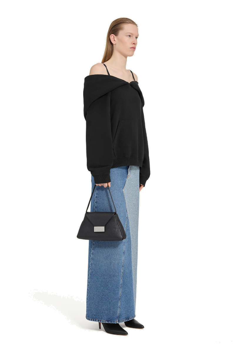 Als radikale Neuinterpretation des klassischen Kapuzenpullovers dekonstruiert dieses Modell von MM6 Loungewear mit einer schulterfreien Silhouette. Für vielseitige Stylingmöglichkeiten lässt sich die übergroße Kapuze gleichzeitig als Ausschnitt drapieren.