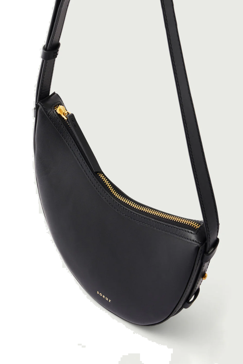 Die Tasche Wino Mini vonSOEUR  ist eine Variante deren ikonischen Winona-Tasche. Ihre asymmetrische Form liegt perfekt auf der Schulter und verleiht einen retro-vintage Look.